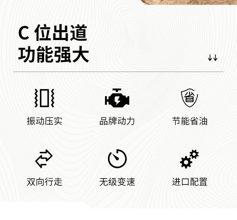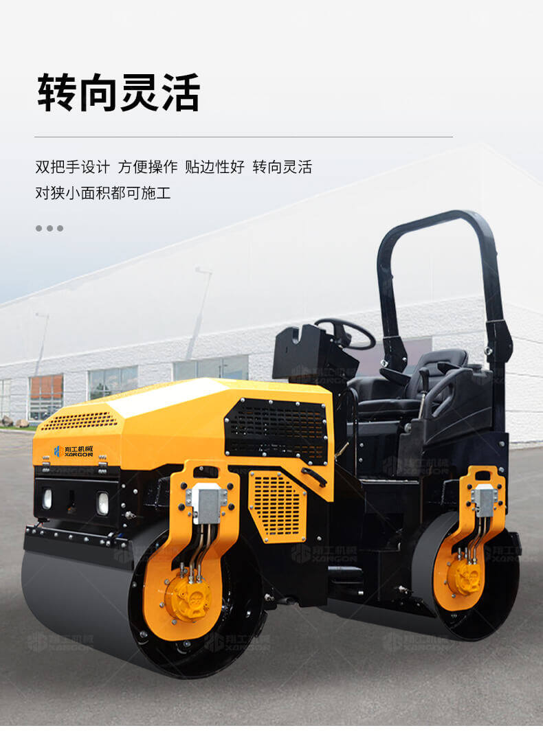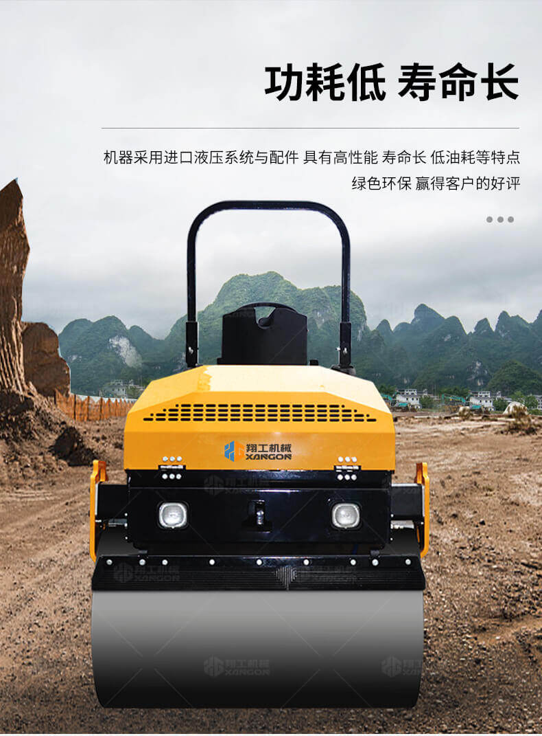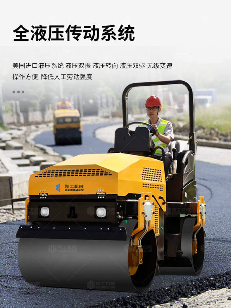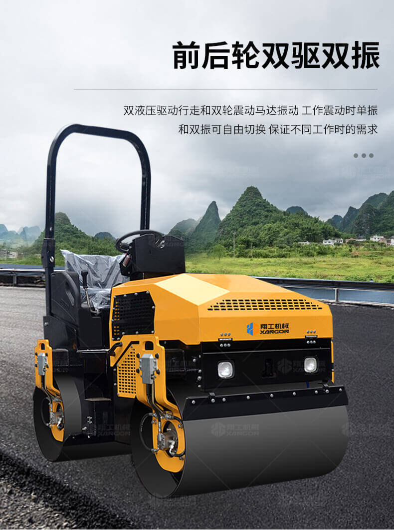 采用進(jìn)口液壓系統(tǒng),雙驅(qū)雙振,前后輪可單獨調(diào)節(jié)振動,亦可同時振動。液壓轉(zhuǎn)向,液壓驅(qū)動,液壓行走,液壓振動。進(jìn)口英國鉑金斯柴油機(jī)三缸水冷四沖程,動力強勁,性能穩(wěn)定。超快速度一小時可達(dá)12千米,無極變速。壓土,碎石,壓瀝青,壓回填土效果超乎想象。