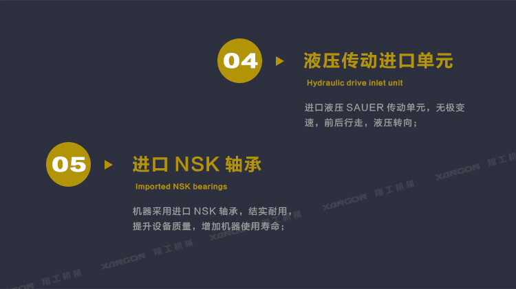 ·傳動機構(gòu)采用名優(yōu)液壓傳動系統(tǒng),無級變速,換向方便,實用壽命長;
