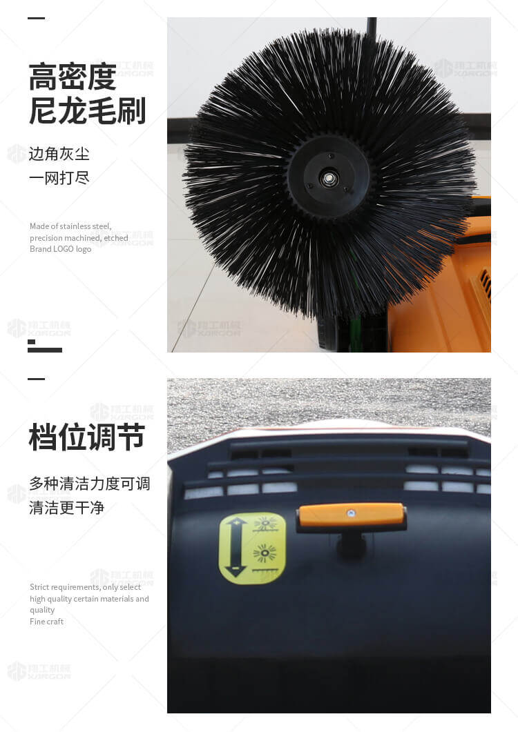 手推式掃地機(jī)能清潔房屋周邊范圍:包括小路,公路,車道和院子,能比用普通的掃把和簸箕節(jié)省5倍的時(shí)間,清掃時(shí)垃圾被迅速的收集到塵箱,簡(jiǎn)單、快速、干凈。