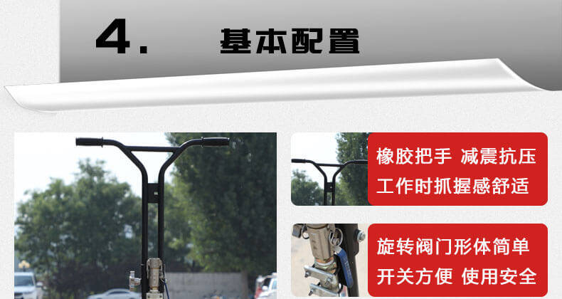 3、三點(diǎn)式減震系統(tǒng):降低操作者的疲勞度,更易控制。