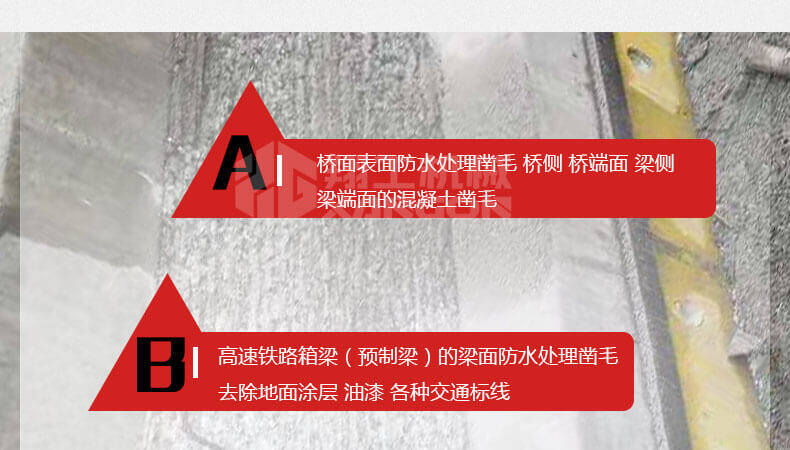11頭鑿毛機(jī)適用于路面、橋面等基面混凝土結(jié)構(gòu),去除混凝土表面的浮漿皮,同時(shí)減少對凝土層的破壞,有效防止?jié)B水,避免水份在混凝土中凍結(jié)引起的混凝土龜裂。
