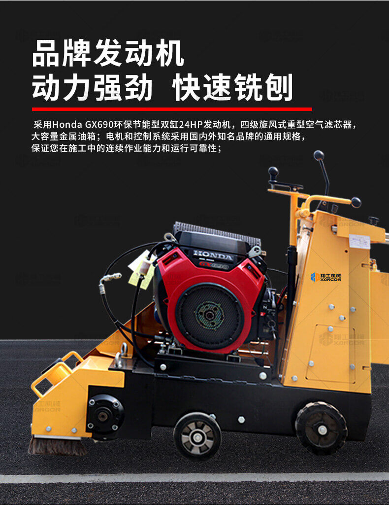 小型液壓銑刨機(jī)采用Honda GX690環(huán)保節(jié)能型雙缸24HP發(fā)動機(jī),四級旋風(fēng)式重型空氣濾芯器,大容量金屬油箱;采用名優(yōu)電機(jī)和控制系統(tǒng),保證您在施工中的連續(xù)作業(yè)能力和運(yùn)行可靠性;