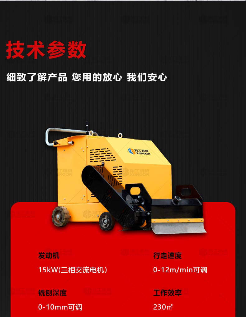 用于橋面鋪設(shè)瀝青或車間舊的混凝土地面重新攤鋪混凝土之前,清理水泥浮漿以及鏟平拉毛,也用于清理建筑施工中堅(jiān)硬灰渣。
