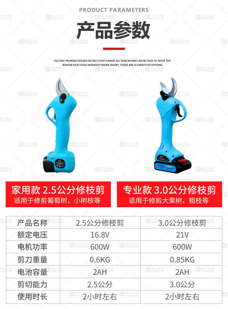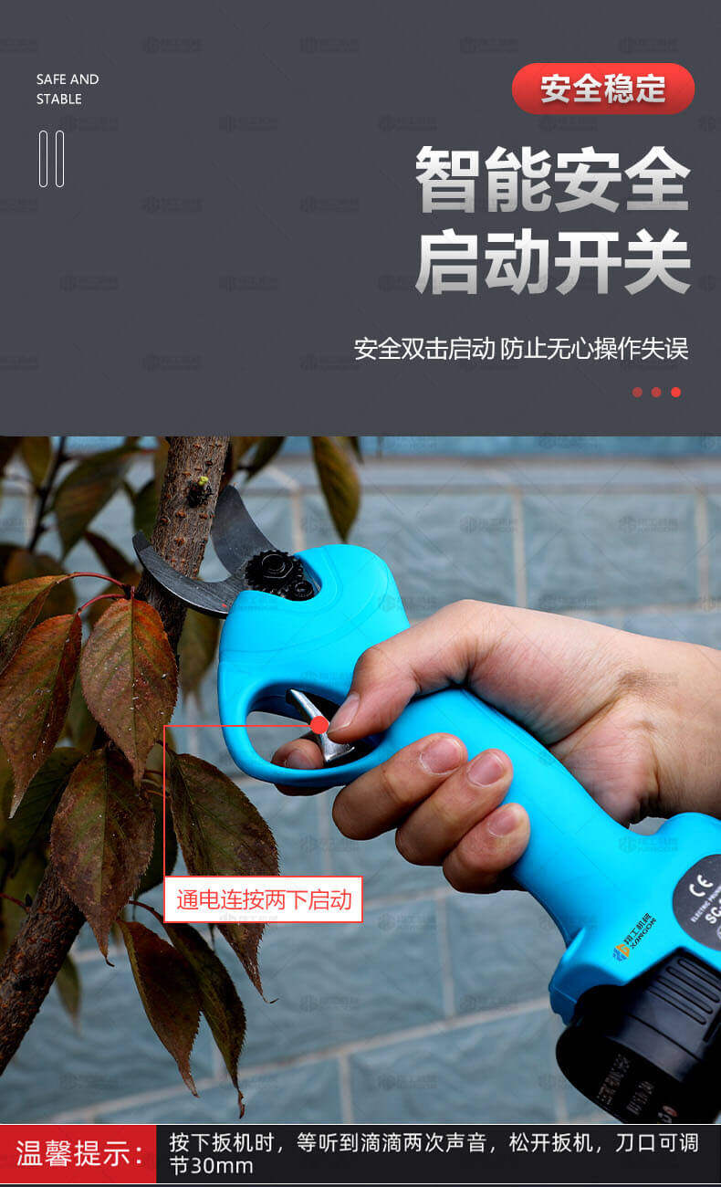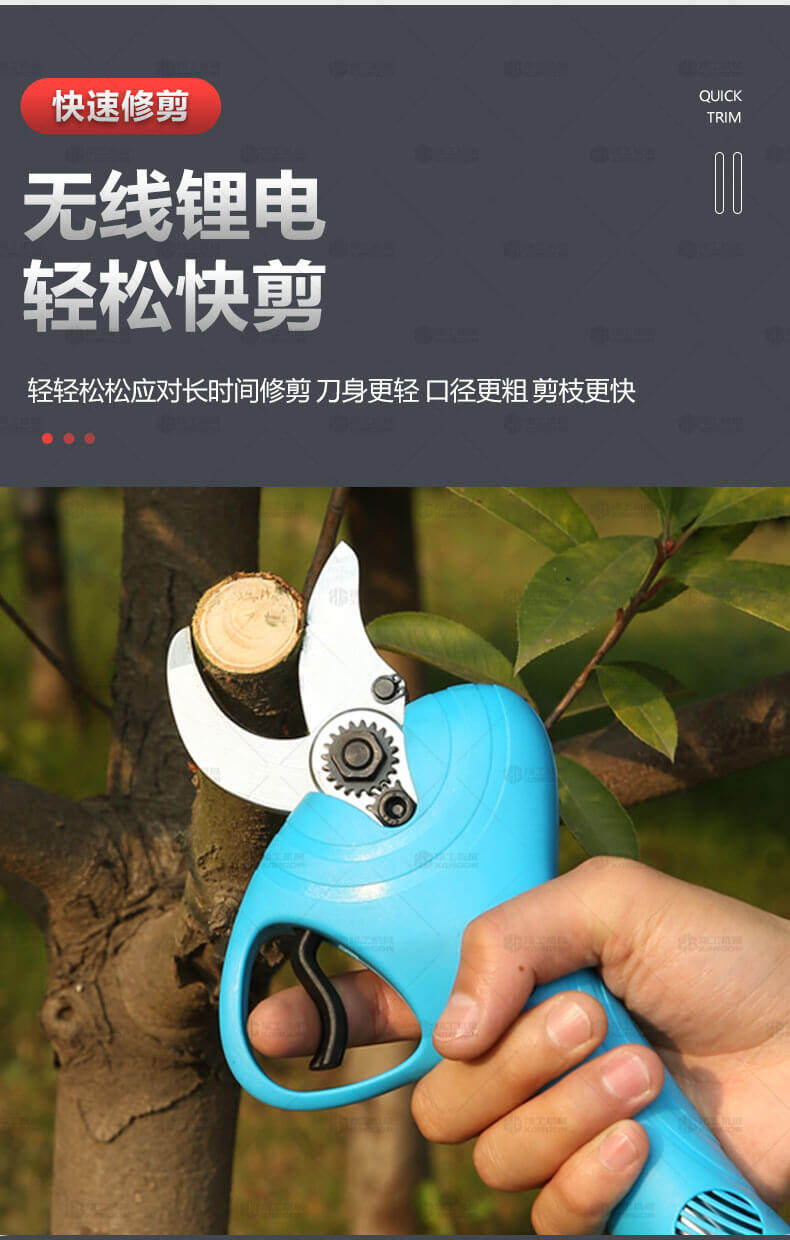 電動(dòng)修枝剪的使用大大提高了植物的修剪效率,降低了修剪工的工作強(qiáng)度,大受人們的喜愛。滿足了當(dāng)今社會(huì)簡單輕巧的工作方式,一把小小的電動(dòng)修枝剪不傷手,一年四季均可以使用,解決寒冬酷暑高強(qiáng)度工作的傷害,電動(dòng)修枝剪有多種選擇,這是一款無線的電動(dòng)修枝剪,使用更加方便。