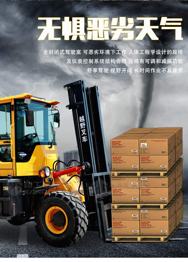 3.普通叉車(chē)只能在平整的路面上作業(yè),而越野叉車(chē)既可以在普通路面上作業(yè),還可以在山路泥路崎嶇道路作業(yè),輪胎抓地力強(qiáng),不打滑。