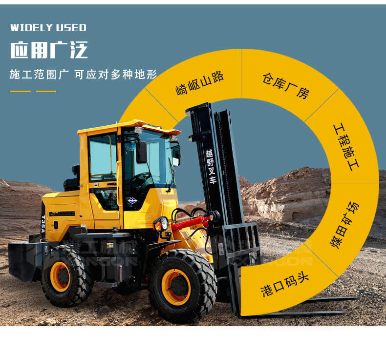 越野叉車適用于道路修筑、城市建設(shè)、環(huán)境衛(wèi)生、石料場(chǎng)、中小型土木工程、車站、碼頭、貨場(chǎng)、倉(cāng)庫(kù)等地方,主要用來(lái)轉(zhuǎn)運(yùn)石料、設(shè)備、貨物、城市垃圾箱以及集裝物料等。