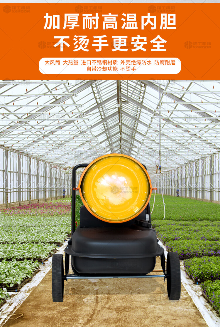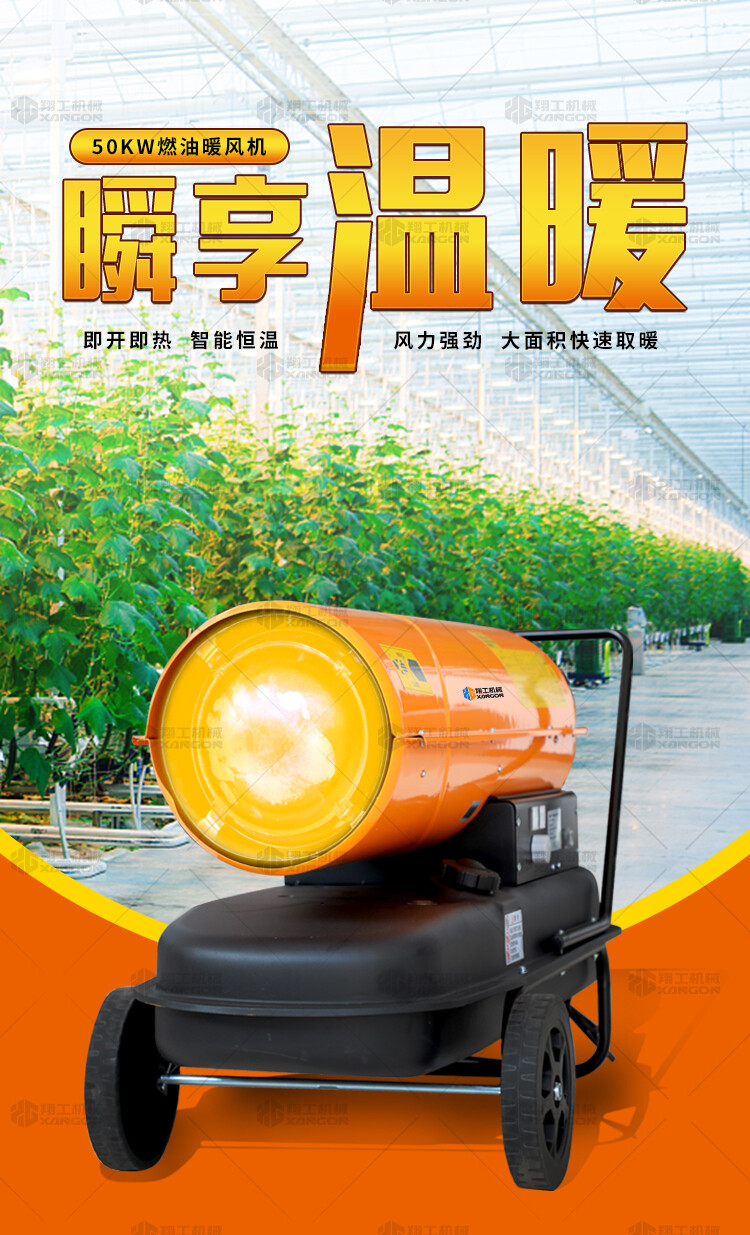 燃油暖風(fēng)機可對禽畜取暖,育雛取暖,花卉養(yǎng)殖,大棚蔬菜瓜 果,商場,車間,展會進行取暖。