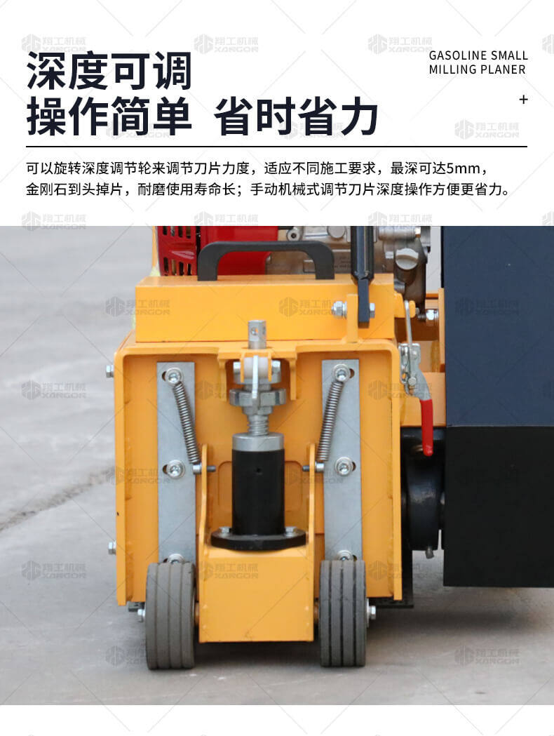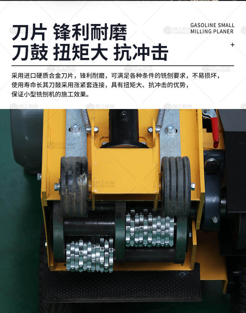 汽油小型銑刨機(jī)用于橋面鋪設(shè)瀝青或車(chē)間舊的混凝土地面重新攤鋪混凝土之前,清理水泥浮漿以及鏟平拉毛,也用于清理建筑施工中的堅(jiān)硬灰渣。