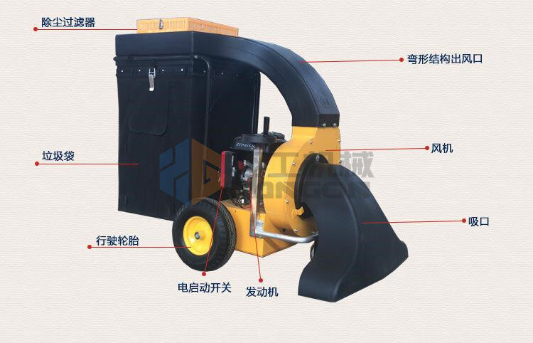 該設(shè)備工作效率高,比人工清掃效率高幾倍,可手推助力行走。垃圾儲(chǔ)存袋采用便捷式方式,便于更換垃圾,且使用成本較低。吸口可配置延長(zhǎng)管,用來(lái)吸收綠化帶中的落葉和垃圾。吸口高度可調(diào),面對(duì)落葉較厚或大的法桐樹(shù)葉較多的區(qū)域,也能輕松收集干凈。目前以用在環(huán)衛(wèi)人行道、園林、物業(yè)小區(qū)、校園、公園、廣場(chǎng)、工廠廠區(qū)和車(chē)間等得到廣泛應(yīng)用。