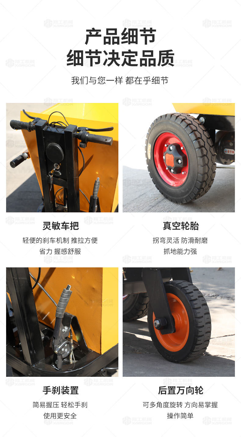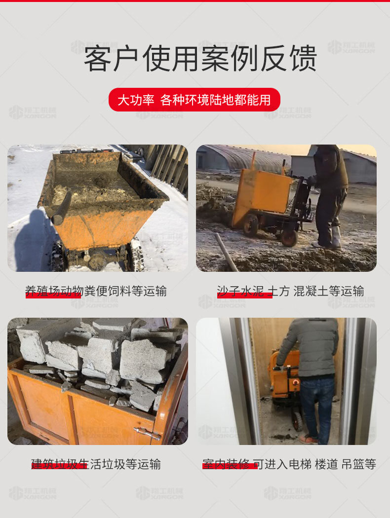 此款車適用于建筑工地、室內(nèi)裝修、養(yǎng)殖場、工廠等場所,運輸沙子、水泥、土方、混凝土、建筑垃圾生活垃圾、養(yǎng)殖場動物糞便、飼料等,體積小操作簡單靈活,可原地360度轉(zhuǎn)圈,可進入樓層、樓道、電梯、吊籃等各種狹小空間作業(yè),是您必不可少的裝卸助手。