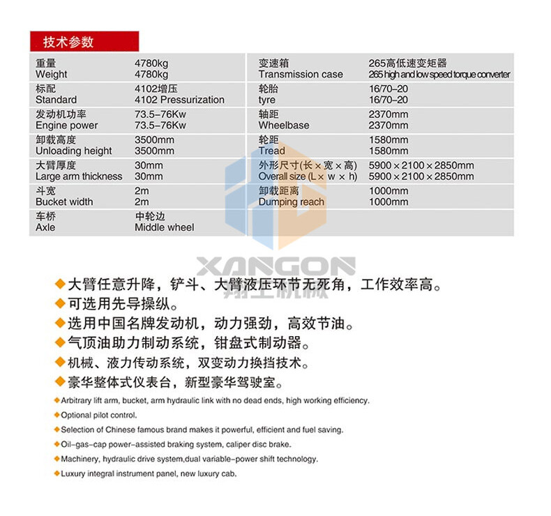 主要用于鏟裝土壤、砂石、石灰、煤炭等散狀物料,也可對礦石、硬土等作輕度鏟挖作業(yè)。換裝不同的輔助工作裝置還可進(jìn)行推土、起重和其他物料如木材的裝卸作業(yè)。在道路、特別是在高等級公路施工中,裝載機(jī)用于路基工程的填挖、瀝青混合料和水泥混凝土料場的集料與裝料等作業(yè)。