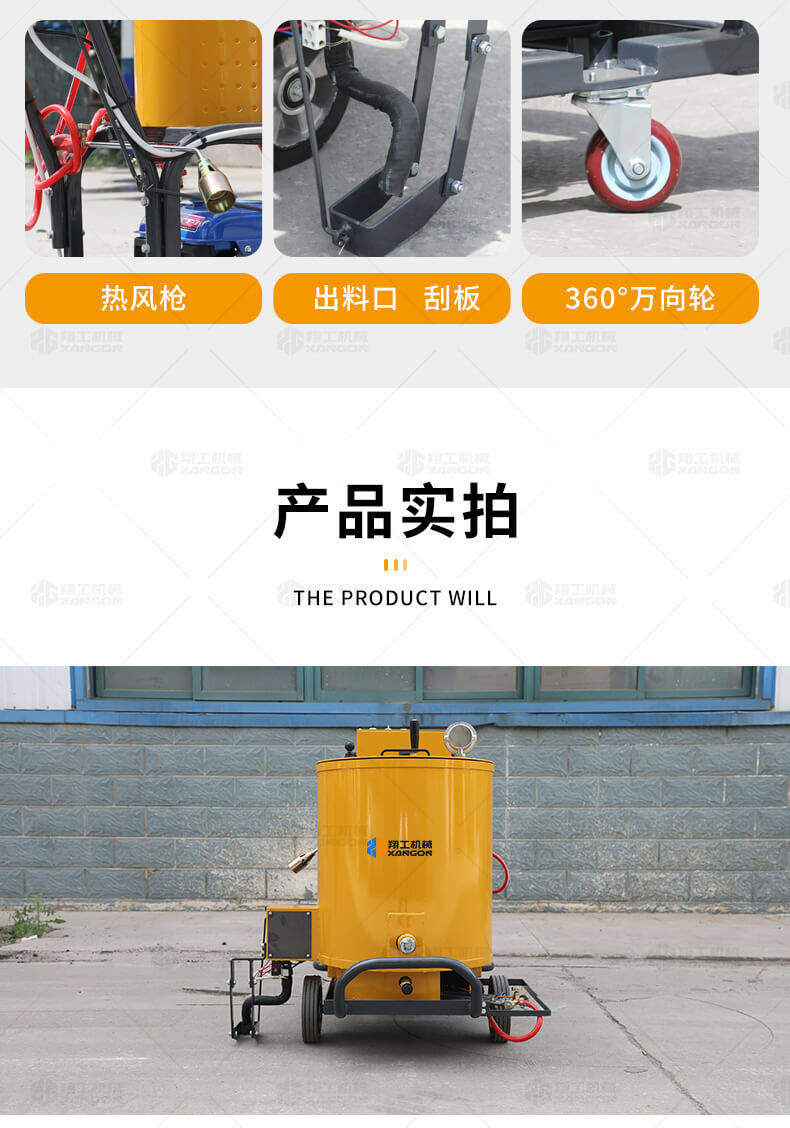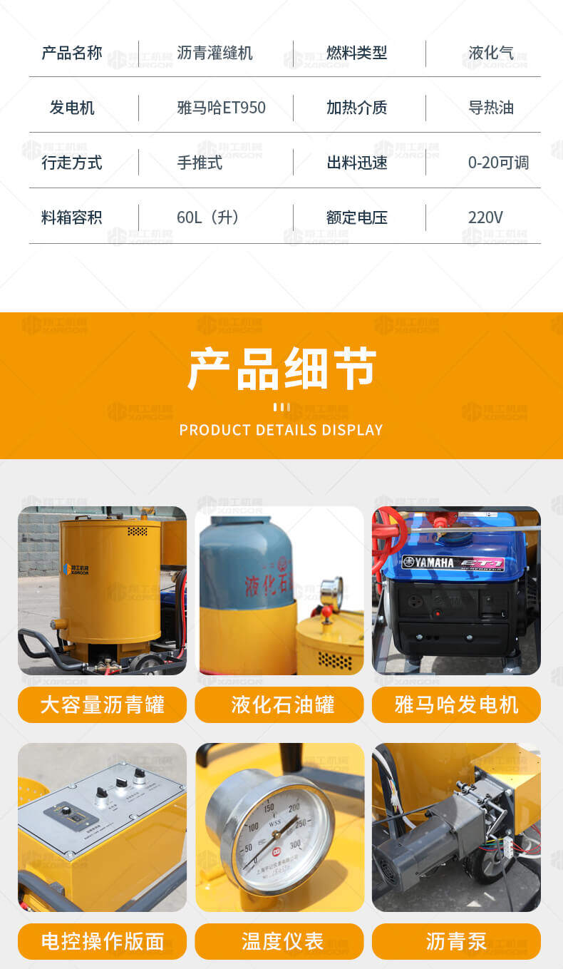 60升瀝青灌縫機(jī)用于瀝青或水泥路面裂縫瀝青灌縫。 60升瀝青灌縫機(jī)采用名優(yōu)發(fā)電機(jī),性能穩(wěn)定;液化氣加熱,方便靈活;超大瀝青罐;出料管路全程加熱,避免堵塞。