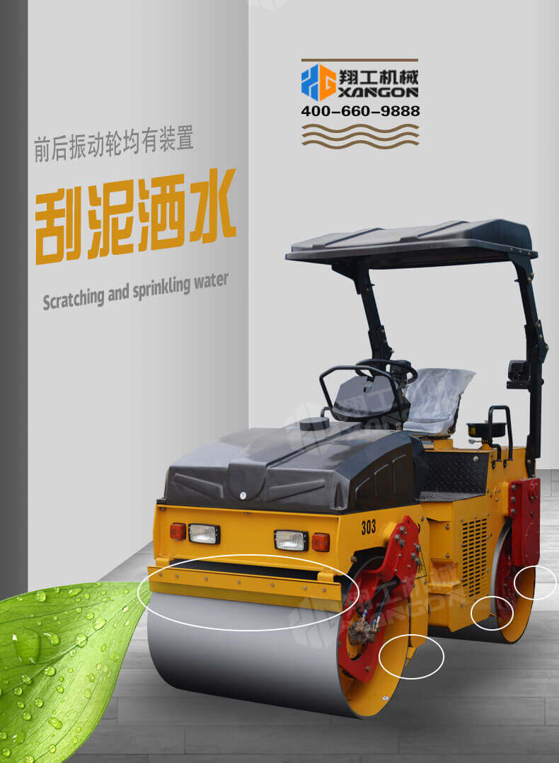 4,前后振動輪均有刮泥和灑水裝置;
