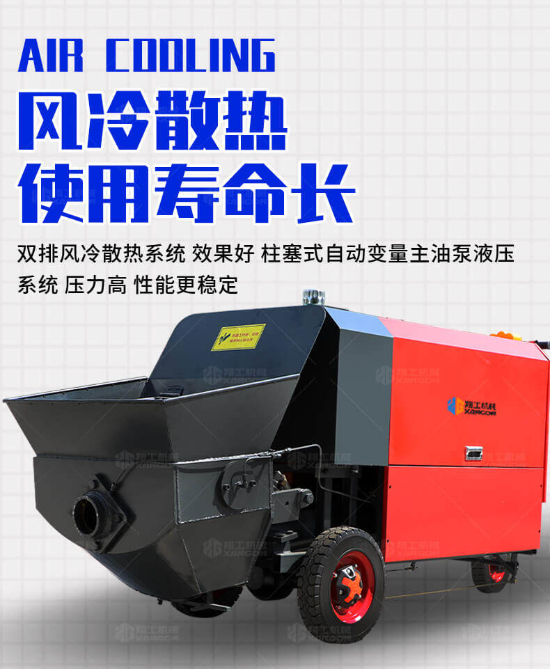 采用獨(dú)創(chuàng)的泵車尾輪驅(qū)動系統(tǒng)輕松解決移動時帶來的各種困難,采用雙排風(fēng)冷散熱系統(tǒng)散熱效果更好,液壓系統(tǒng)采用壓力更高,性能更穩(wěn)定的柱塞式自動變量主油泵,采用先進(jìn)的三維立體壓模一體式自動攪拌料斗可輸送機(jī)制砂,高標(biāo)號混凝土,有效緩解積料問題。