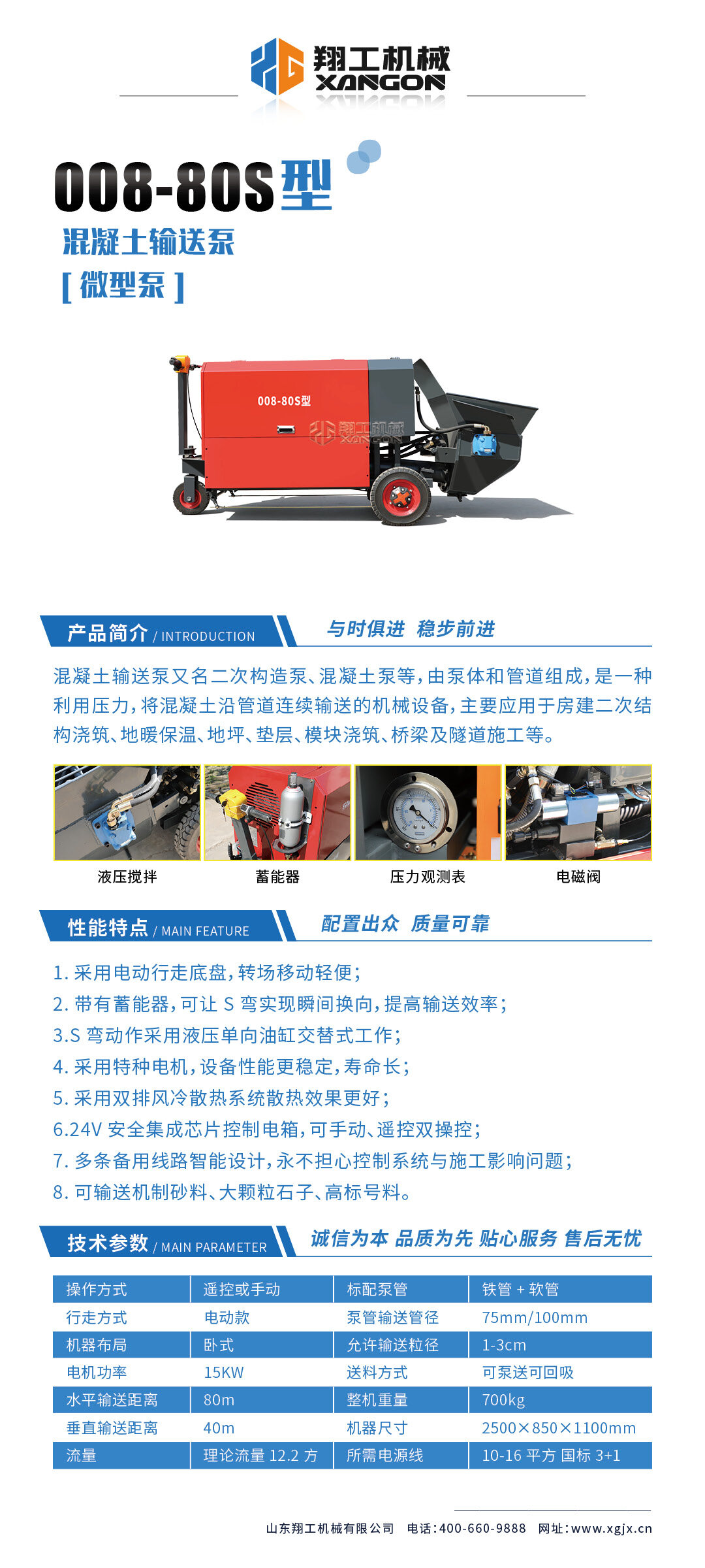 采用電動(dòng)行走底盤(pán)移動(dòng)更輕便,采用雙排風(fēng)冷散熱系統(tǒng)散熱效果更好,液壓系統(tǒng)采用國(guó)內(nèi)知名廠(chǎng)商葉片泵,故障率低,壽命更長(zhǎng),性能更穩(wěn)定,輸送距離更遠(yuǎn)揚(yáng)程更高,打料速度更快。