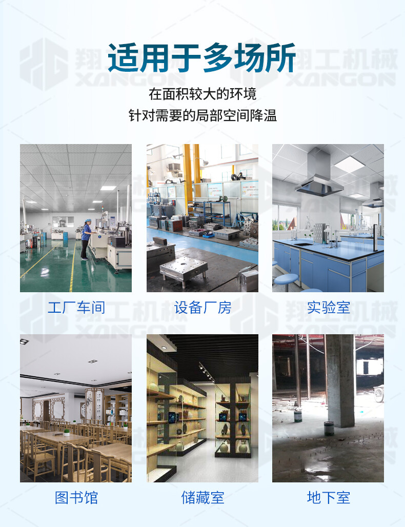 適應(yīng)各種大面積場所快速降溫:辦公場所降溫 汽車維修降溫 車間制冷 室內(nèi)制冷 集裝箱制冷 線上降溫 廚房降溫 車間崗位降溫