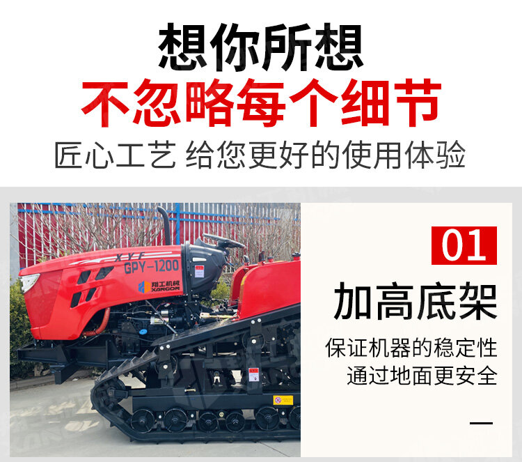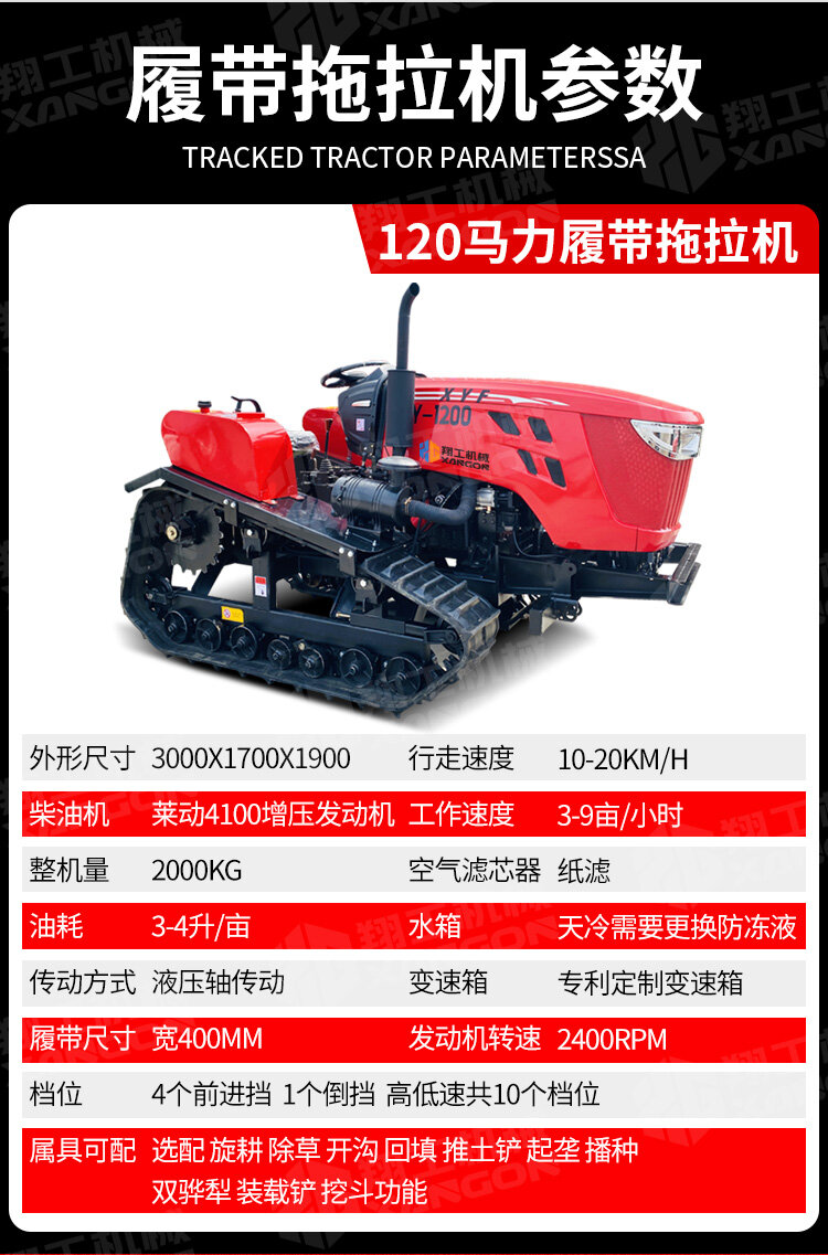 本款120馬力履帶旋耕機(jī),動(dòng)力強(qiáng)勁,作業(yè)高效。采用重型履帶底盤,接地壓力小,通過性與穩(wěn)定性極佳,輕松應(yīng)對水田、泥濘等復(fù)雜工況。其深耕效果好,碎土率高,能一次性完成旋耕、碎土作業(yè),是規(guī)模化農(nóng)田耕整地的理想選擇。