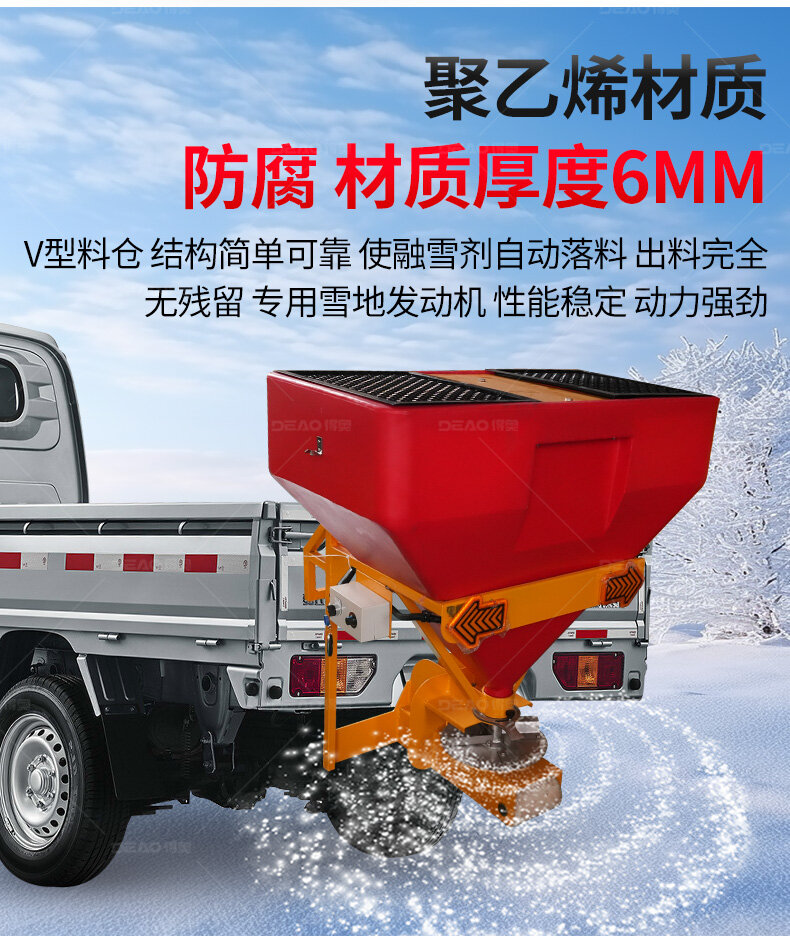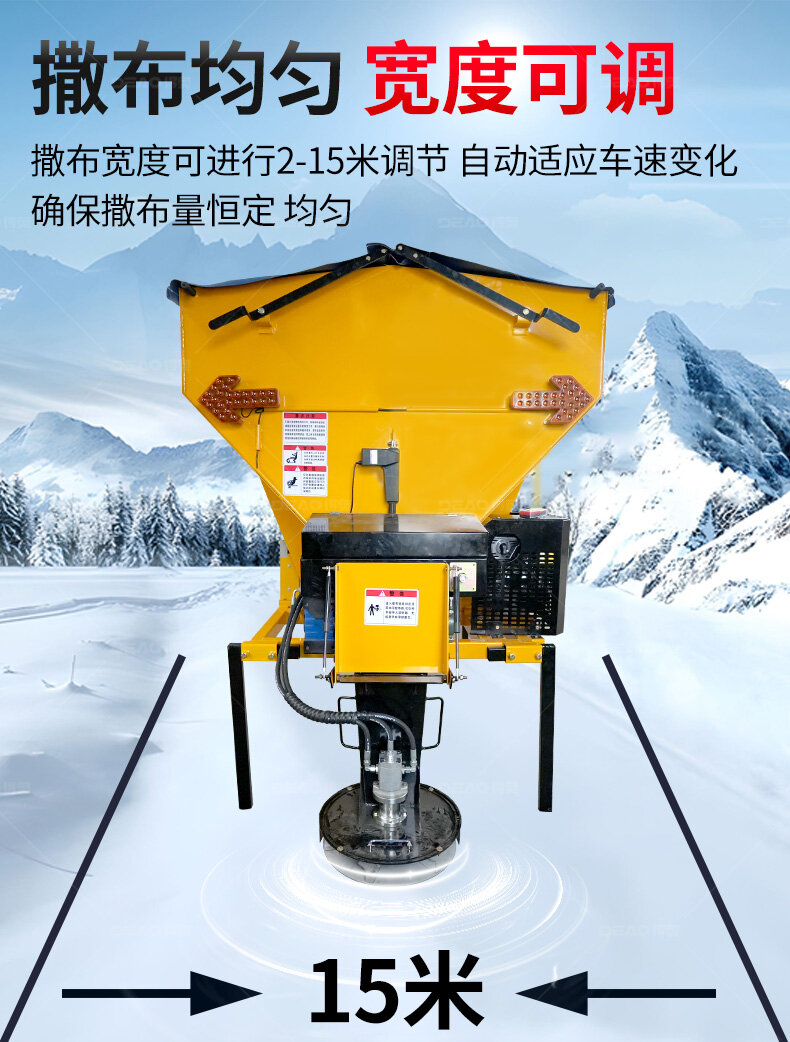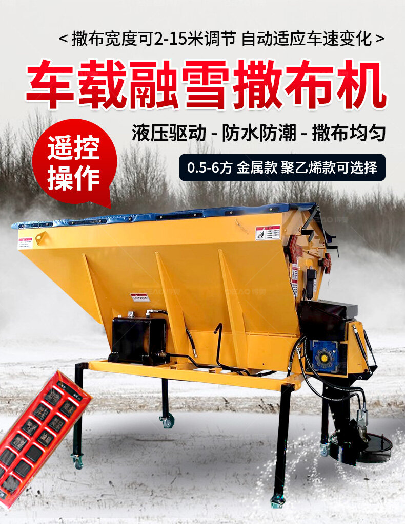 融雪劑撒布機(jī)是車載式撒布機(jī),適用于冰雪路面防滑沙料和融雪劑的撒布,是市政公路、高速公路的融雪撒布的便利設(shè)備。