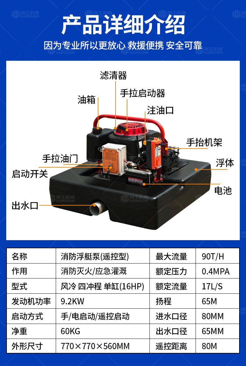 浮艇泵是一種便攜式水上抽水設(shè)備,專為消防、排澇設(shè)計(jì)。采用漂浮結(jié)構(gòu),可快速部署于河流、池塘等水源,抽水流量大(30-200m3/h),壓力穩(wěn)定,適應(yīng)復(fù)雜環(huán)境。輕便靈活,操作簡單,適用于消防滅火、抗旱灌溉及應(yīng)急排水,是野外作業(yè)和災(zāi)害救援的高效裝備。